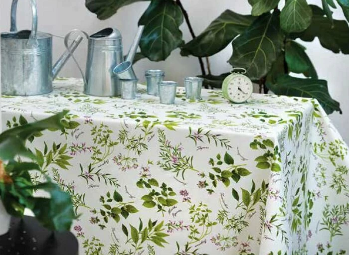 Het doorzichtige tafelzeil met kruidenplantjes is een zeer stijlvol tafelzeil waarop je veel groene takjes, bladeren en roze bloempjes ziet. Het zeil heeft een transparante kleurige ondergrond. Verkrijgbaar vanaf 50 centimeter! Wij raden je aan om doorzichtig tafelzeil op rol te laten verzenden.
