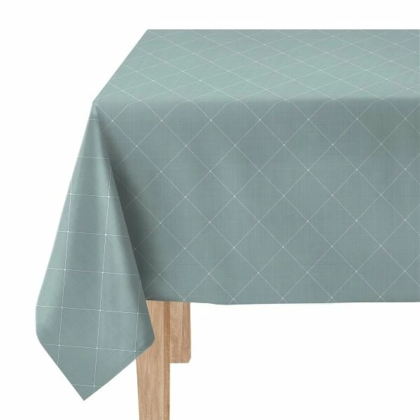 Proefstaaltje: Gecoat wasbaar tafelzeil Vector oudgroen/blauw € 2.49