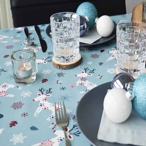 Proefstaaltje: Kerst tafelzeil eland blauw € 1,89