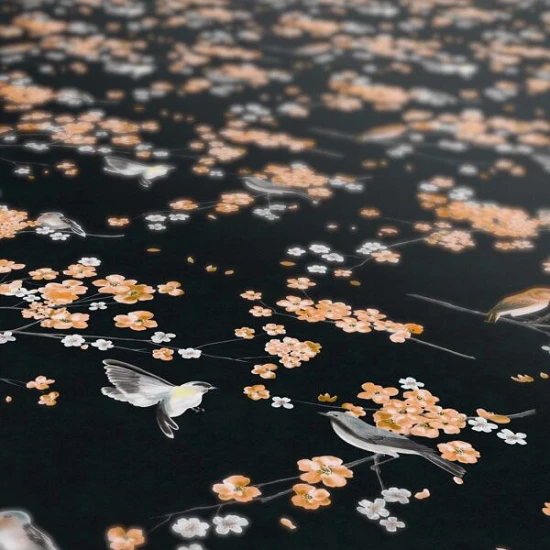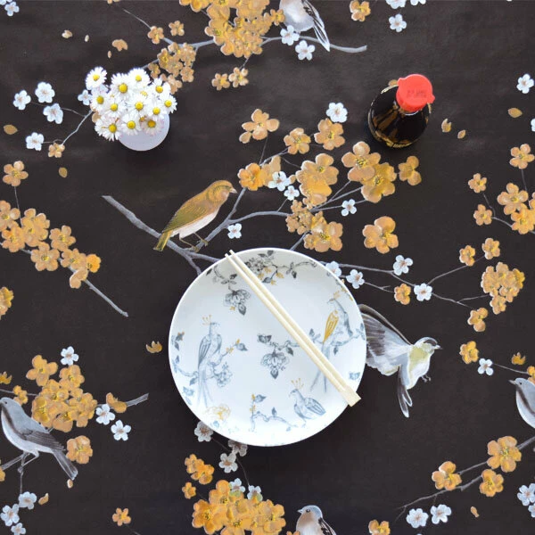 Proefstaaltje: Tafelzeil Sakura bloesem zwart € 1,89