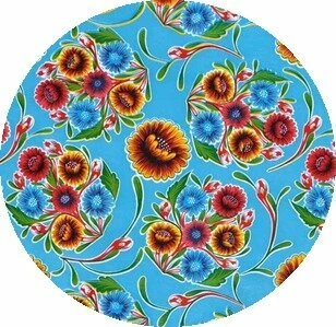 Proefstaaltje: Mexicaans tafelzeil floral lichtblauw € 1,89