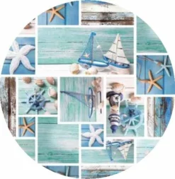 Proefstaaltje: Tafelzeil maritiem zeilboot & ankers € 1,89