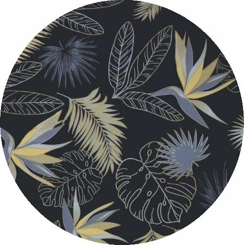 Proefstaaltje: Tafelzeil paradijsvogelbloemen zwart/goud € 1,89