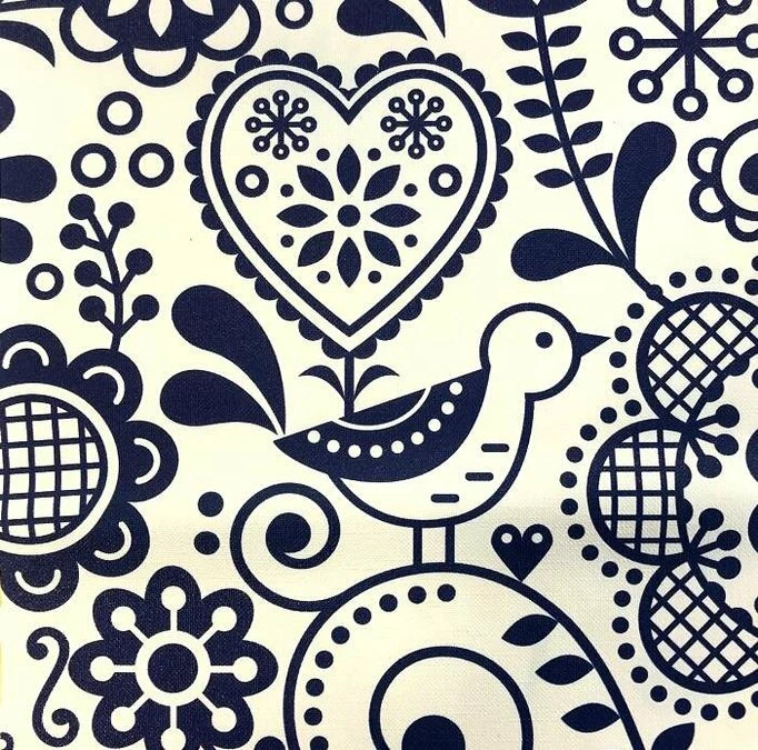 Proefstaaltje: Tafelzeil structuur donkerblauw vogel € 1,89
